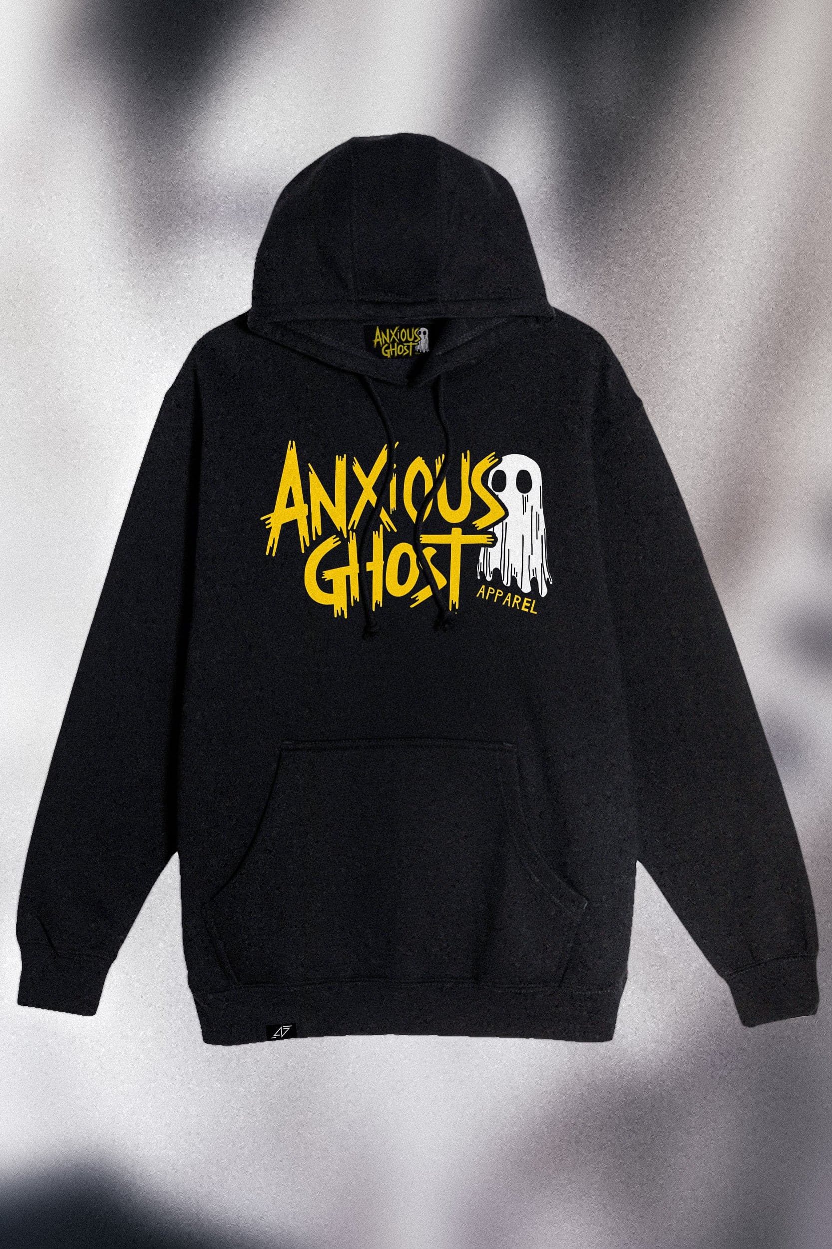 Anxious Ghost Hoodies are hand printed in small batches and feature a longer, cozier fit for maximum emotional support.